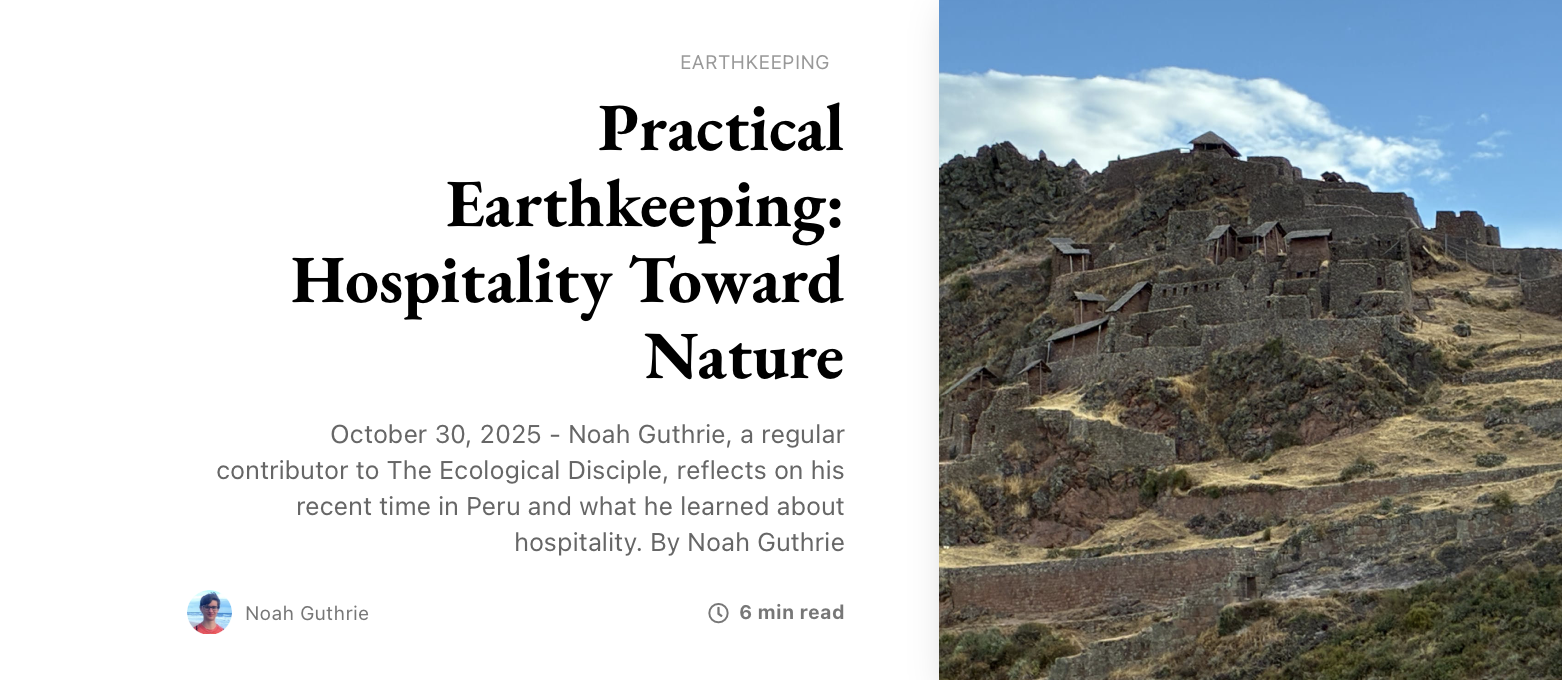 The Ecological Disciple is an online journal for people learning to follow Jesus from the ground up. We publish original writing weekly. Subscribe to receive each new piece delivered directly to your email.