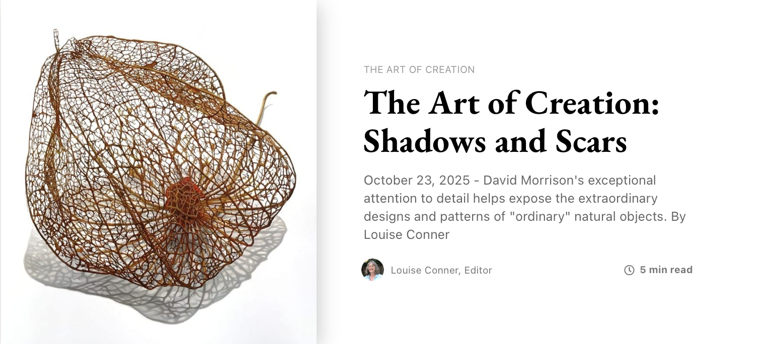 The Art of Creation explores art that interacts with nature and the artistry inherent in creation itself. Louise Conner is the main writer and editor of the column.