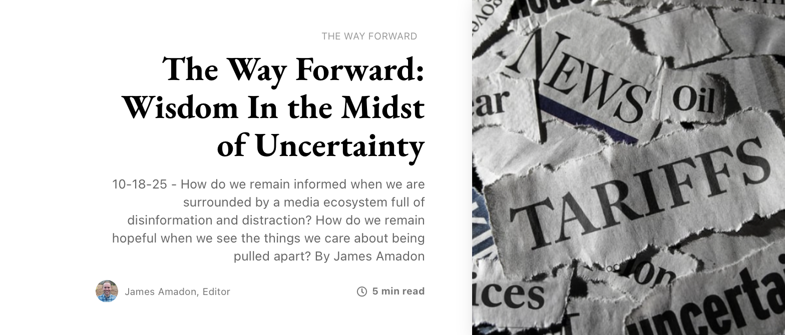 The Way Forward looks at the Bible and theology through the lens of ecological discipleship. James Amadon is the main writer.
