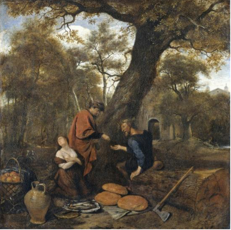 The simple outline of the story is as follows: Erysichthon is the greedy king of Thessaly who enters a sacred grove of trees in search of timber for his house. Against the instincts of all of his men (who refuse to do his bidding), he chops down the great oak in the middle of the grove, in which lives a tree nymph who calls out for justice as she is dying. The goddess of harvest and health, Demeter (Ceres in the Roman mythologies), commands the spirit of famine to infect Erysichthon as punishment for his arrogance and greed. His life turns into a hopeless quest to satiate his hunger, with everything he consumes only increasing his appetite. He burns through all of his possessions until finally he ends up selling his own daughter for food. And when that proves insufficient, he finally turns on himself, gnawing on his own limbs, until in the end he consumes his very self.