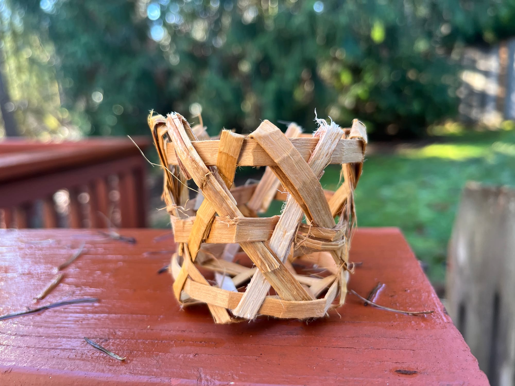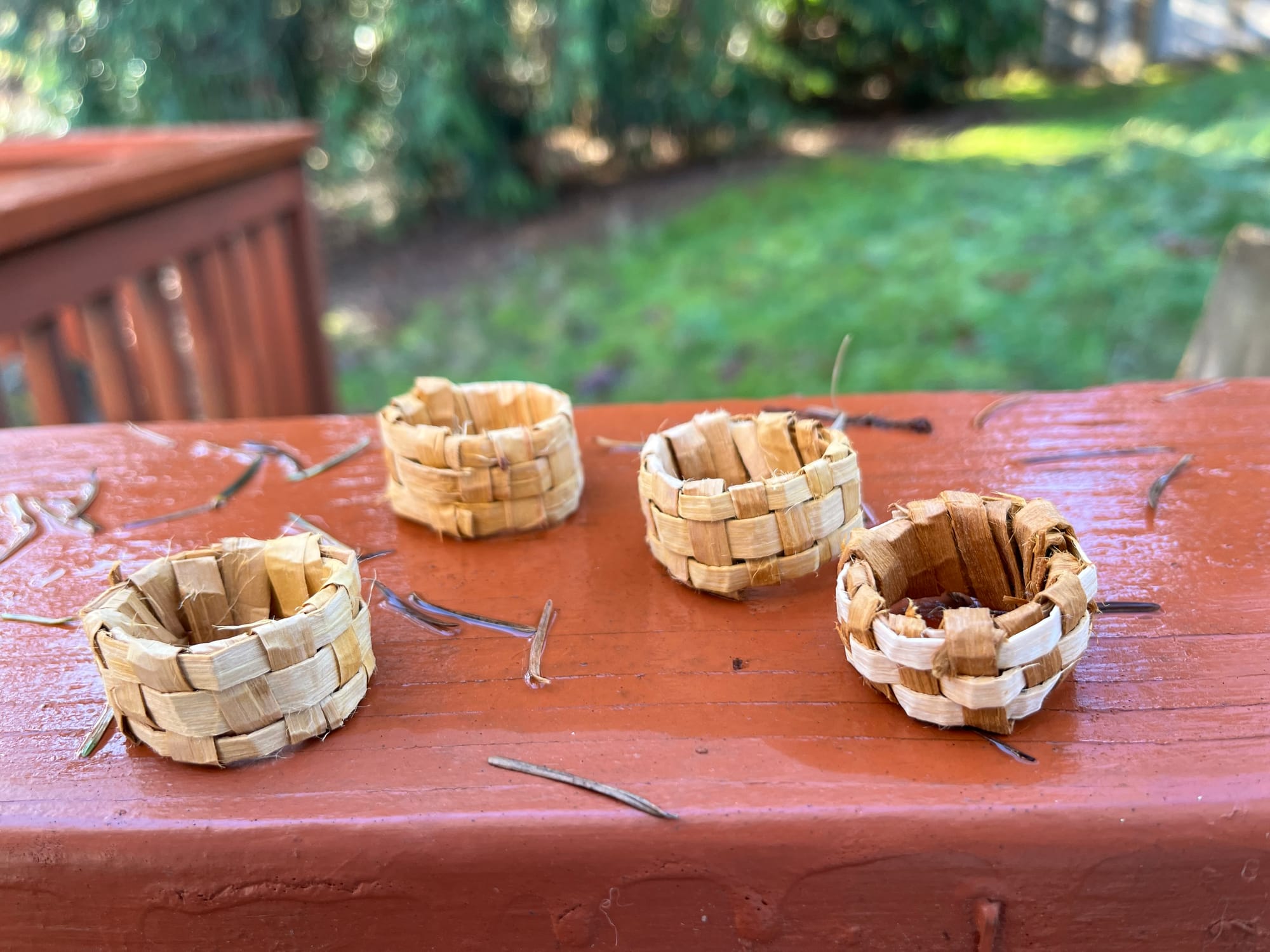Although I am a novice, the process and results have been deeply rewarding to me. The work required to create even a coaster feels like a way of calling attention to the tree that spent its life providing shelter, food and shade to the ecosystem it was part of. When I strip, peel, dry, soak, and weave the bark into a useful form, it means that the tree had and still has a value worthy of my time and effort. My work is not as a beautiful as the tree itself, but it is a small reminder of its beauty and worth.