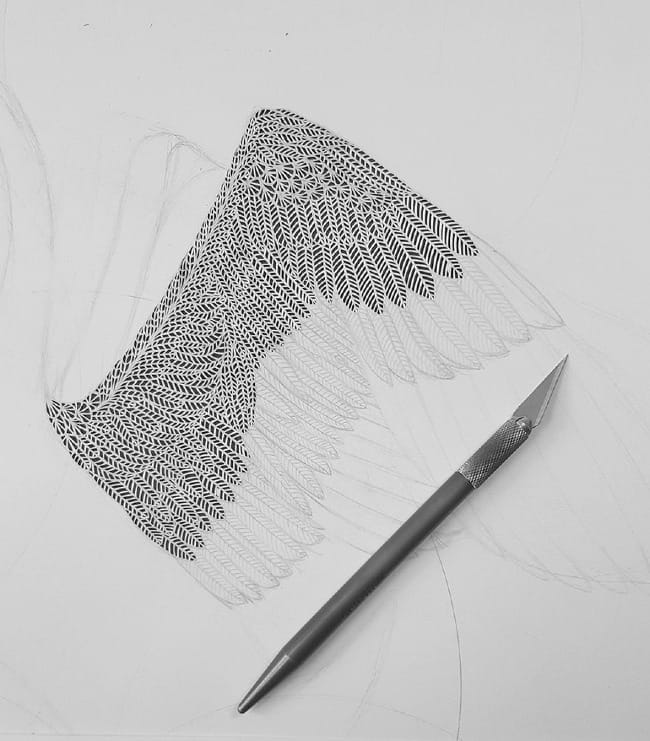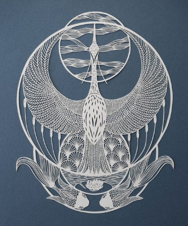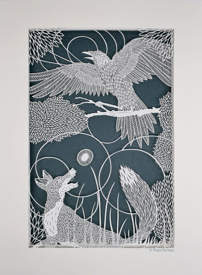 Pippa Dyrlaga is a Yorkshire, England-based artist who, with only a piece of paper, a drawing instrument, and a precision knife, creates an imaginative world of creatures and places that evokes awe toward the natural world. She does this by using her vision, time, and patience to cut intricate patterns of curves and lines that turn into the feathers and scales, ripples and clouds that inform her work and point the viewer to discover and rediscover delight in the beauty and relationships all around them.