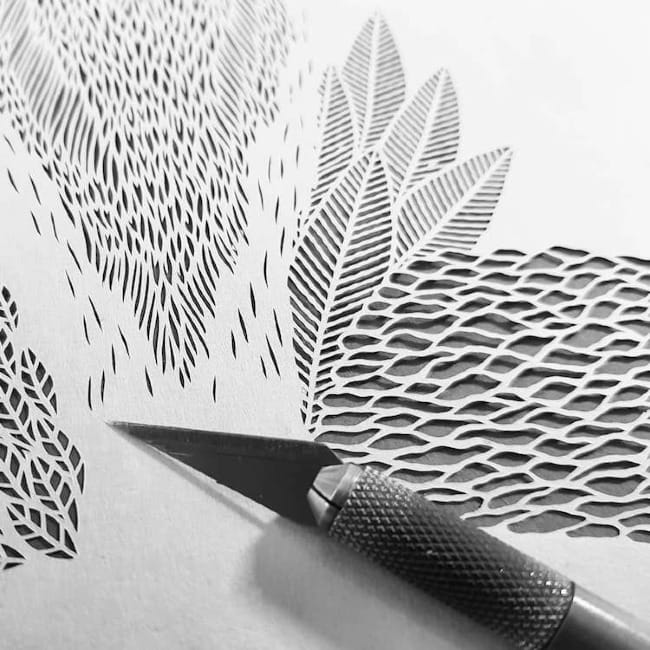 "There is definitely a meditative aspect to paper cutting. You have to focus and get into a rhythm. Through my work, I have taught myself patience and quietness, and those are skills I take away and use in other aspects of my life, too," says Dyrlaga.