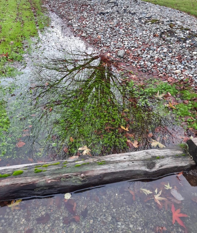reflected in the drainage ditch below.