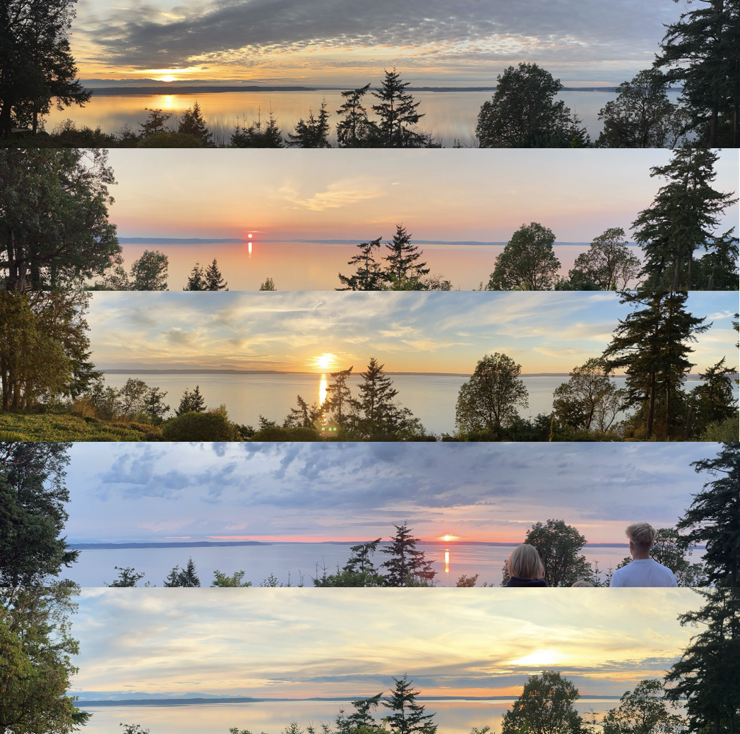 My home on Camano Island is blessed with a clear view of the western horizon, enabling me to watch the Sun go down throughout the year. Watching the setting position move north and south as the Earth goes through its annual axial tilt instills in me a deeper sense of time. Noting the change in seasons this way feels more fluid than marking time with my calendar, and my body feels more in tune with the rhythms of the earth. I also experience the annual solstices and equinoxes as marking points that call me to external and internal reflection, connecting my spiritual journey with the physical movements of creation.