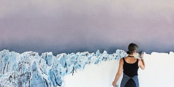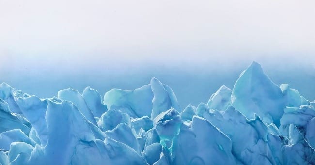 She paints her large-canvas landscapes in intricate detail, so that, although we may never experience Greenland or Antarctica firsthand, through her art we can in some way experience them as if we were there. Her iceberg paintings are so realistic that you can almost feel the blast of cold air from them and they are so accurate and detailed that NASA invited her to come along on Operation IceBridge, an airborne science mission that maps ice changes at both poles. She was invited to document the changes in ice with her paintings, thus spreading the data of climate change through the medium of art.
