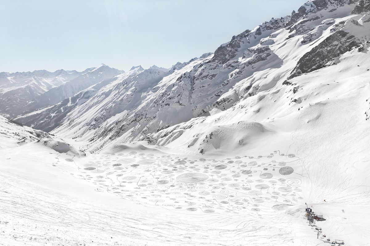 The footsteps create patterns that can be as small as a single spiral or as large as an entire valley floor.