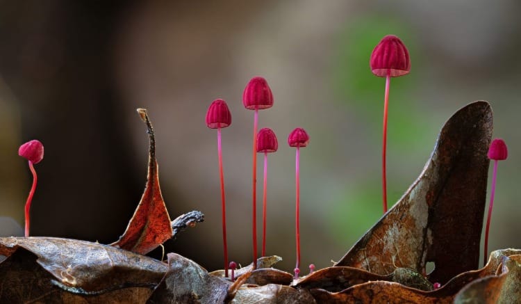As he began restoration work on the 7 1/2-acre property that had previously been converted from rainforest into dairy land, he found himself intrigued by the fungi he found growing in the soil as he planted native trees. Fungi (which are more like animals than plants, but is neither), caught his attention and camera lens with its strange and varied beauty.