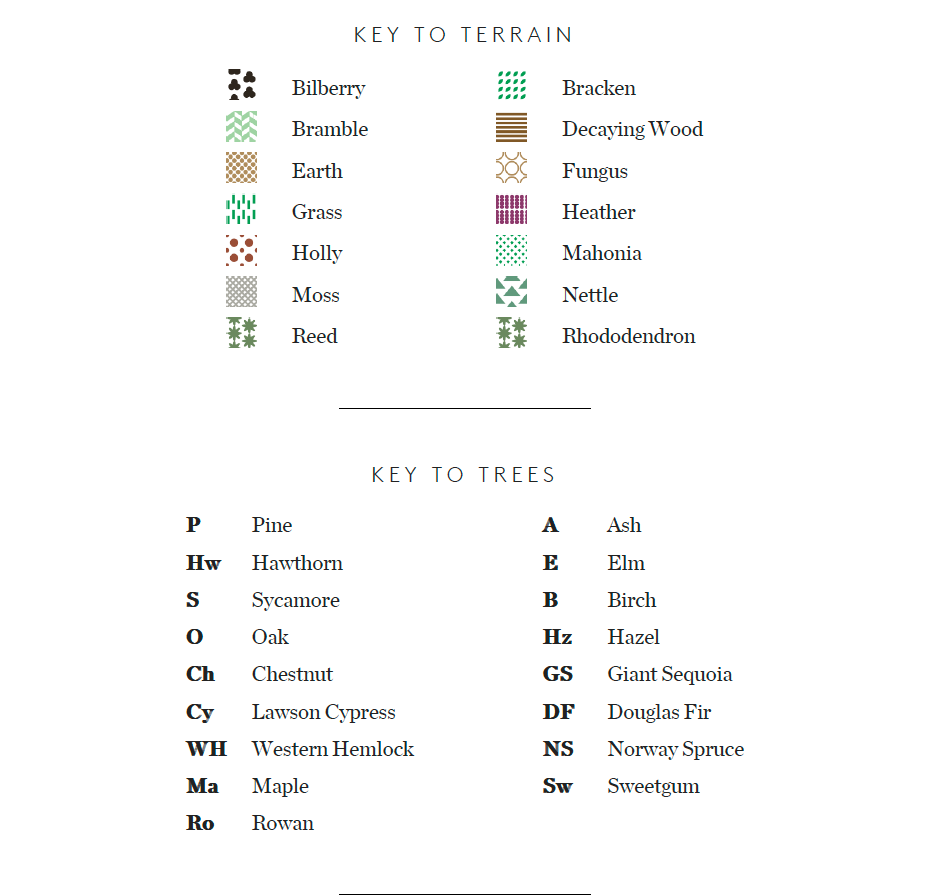 Fineshade Terrain, Tree Site Ecology Map with key to elements