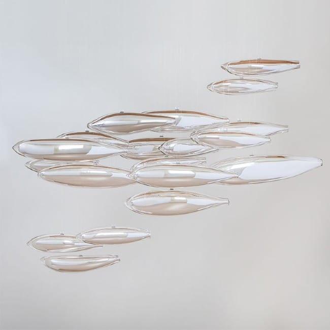 To get the project started, in the summer of 2018, Rossano sent letters out to a worldwide group of fellow artists, inviting their involvement. That fall, around 75 glassblowers from different parts of the world responded, coming to the Museum of Glass in Tacoma, Washington to participate in creating glass fish for an exhibit, which would later open at the Bellevue (WA) Museum of Art. This specific event led to creation of around 300 of the fish forms.
