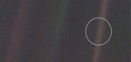 Earth appeared as a tiny point of light in the center of scattered light rays from the Sun. In his 1994 book Pale Blue Dot, influential astronomer Carl Sagan wrote the following: