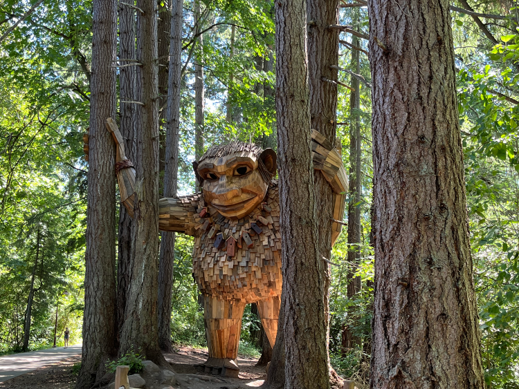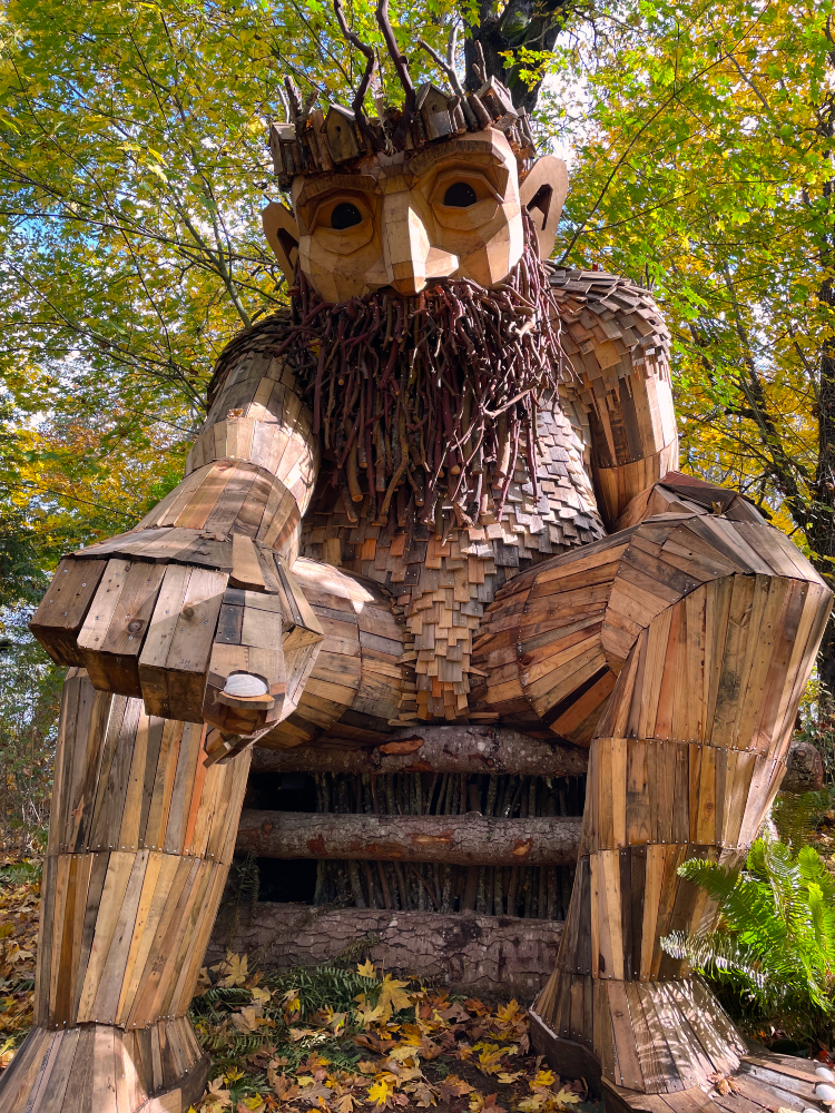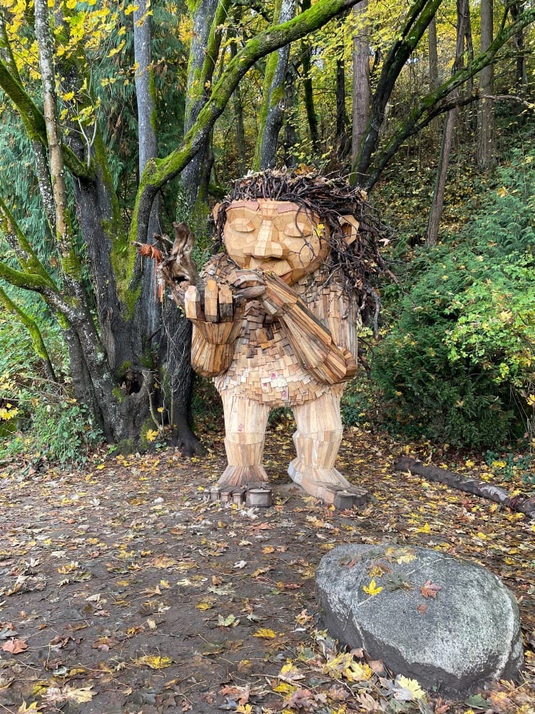 Last fall, as part of a work outing, I was able to visit two of Dambo’s trolls: Oscar the Bird King on Vashon Island and Bruun Idun in West Seattle.