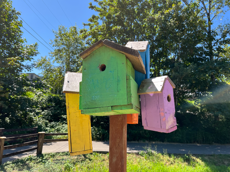 It is always Dambo's goal and hope that birds will take up residence in these birdhouses and make the sculptures thoroughly part of the place where they are located.