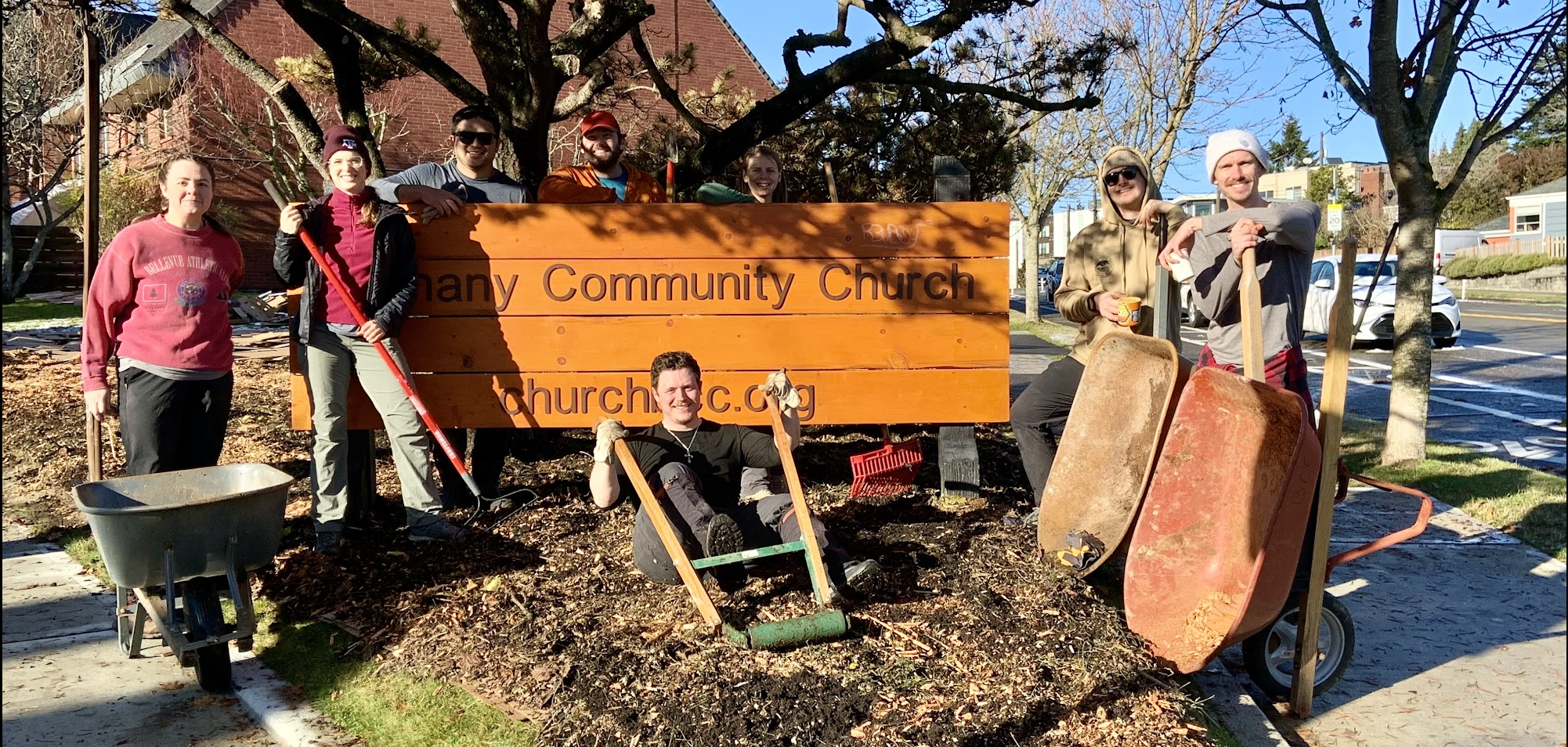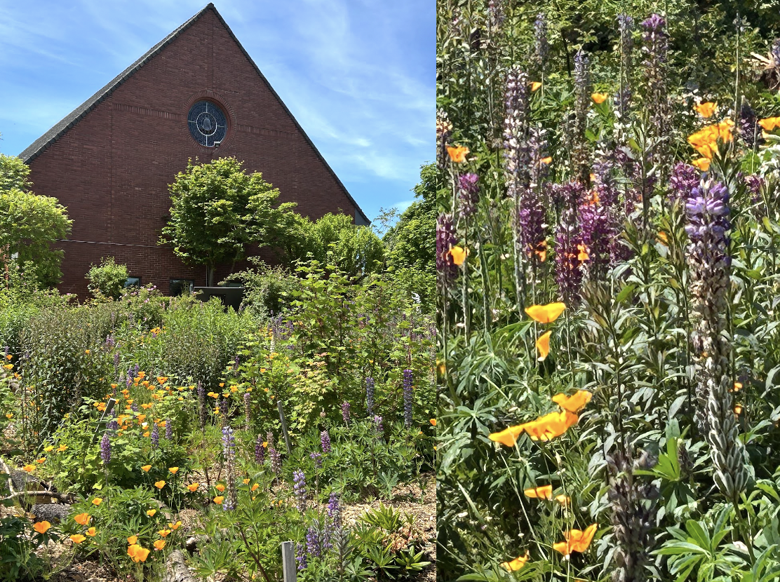Just outside the main sanctuary of Bethany Community Church, a large, non-denominational congregation in Seattle, an expansive grass lawn used to run from sidewalk to sidewalk. Bethany has been developing a more creation-focused faith for a few decades, so when an idea was presented to "re-wild" the lawn, they were ready. Starting in 2023, volunteers began removing the grass, sheet-mulching the ground, and procuring native plants.