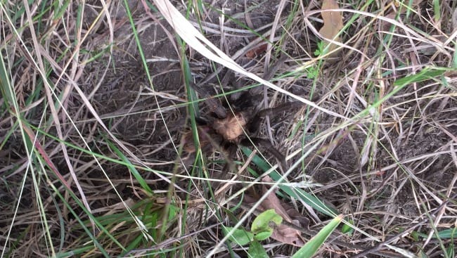 I was on a group hike in the hill country of Texas when a spider crossed our path. It was a tarantula, and I leaned in close to get this picture.